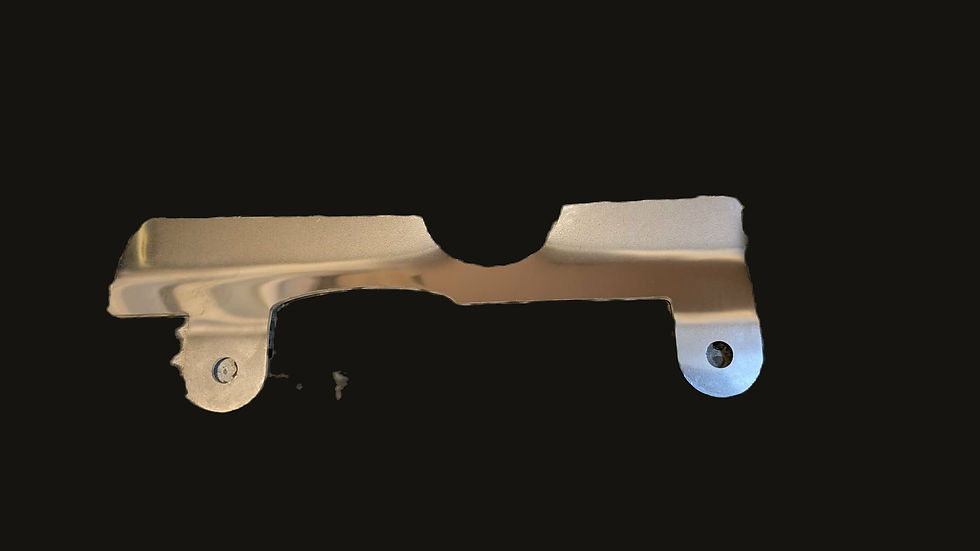 One timing belt cover "F6" in machined, chrome-plated aluminum.